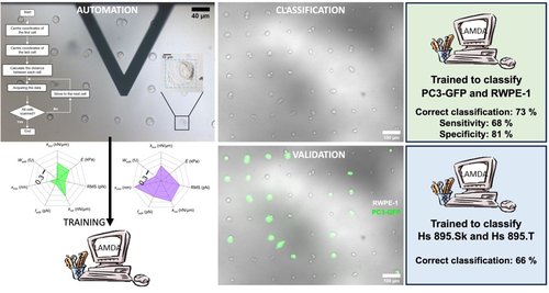 Thomas - - Chemin O., Severac C., Moumen A., Martinez-Rivas A., Vieu C., Le Lann M-V, Trévisiol E., Dague E. 2024. Automated bio-AFM generation of large mechanome data set and their analysis by machine learning to classify prostatic cell lines, ACS applied materials and Interfaces 16, 34, 44504–44517 https://doi.org/10.1021/acsami.4c09218
